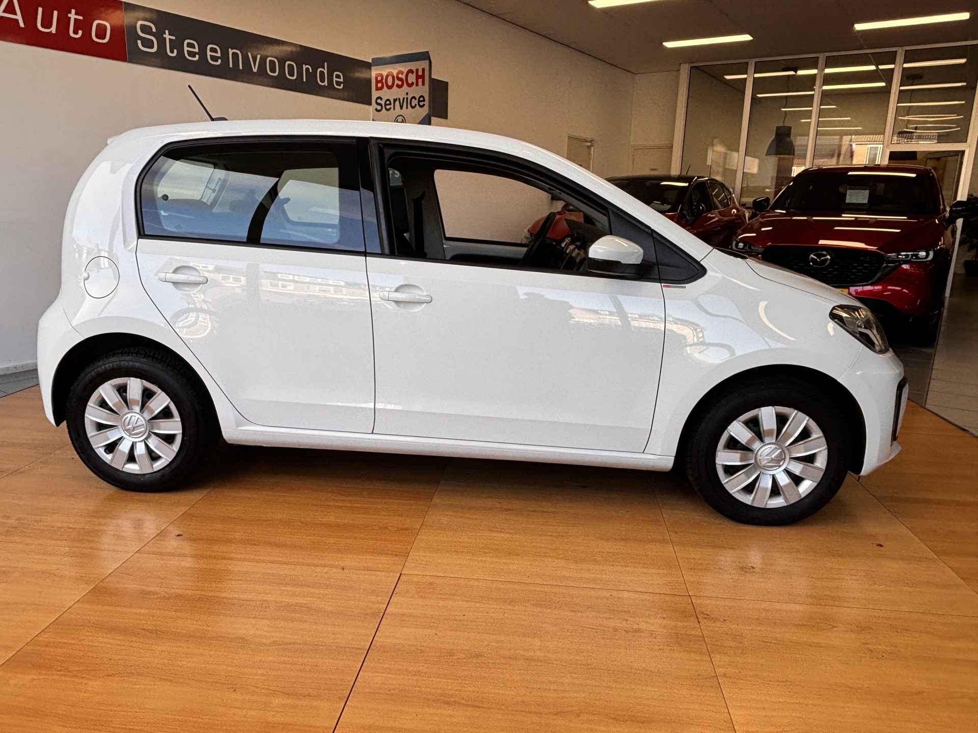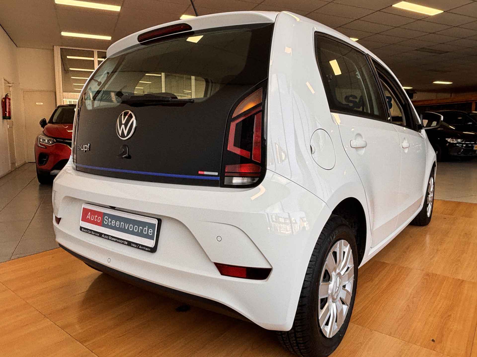 De Volkswagen e-Up! vertegenwoordigt de nieuwe generatie auto's en verenigt elektrische kwaliteit en duurzaamheid met elkaar. Wat een rijervaring, die elektromotor. Forse actieradius, nul uitstoot en heerlijk pittig rijgedrag! Volkswagen-rijders weten het: een VW is gebouwd voor duurzaamheid en deze e-Up! ziet er dan ook uit als nieuw. Op koude dagen voelt u zich snel behaaglijk op de verwarmbare stoelen. Ook LED-dagrijverlichting, donker getint glas achter en in delen neerklapbare achterbank horen tot de voorzieningen op deze auto.